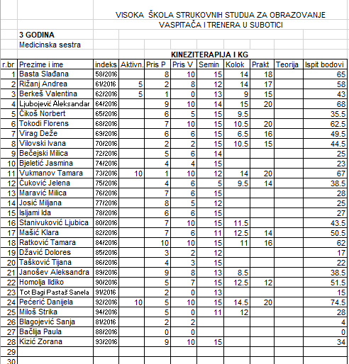 Поштовани студенти, Предиспитне обавезе и остварене бодове у склопу предмета можете видети у прилогу. Теоријски испит је заказан за 31.01. у 13 часова у учионици број 27., резултати испита ће бити истакнути у току дана, док ће се упис оцена у индексе обавити у петак, 01.02. од 12 часова у учионици 27. Предметни наставник