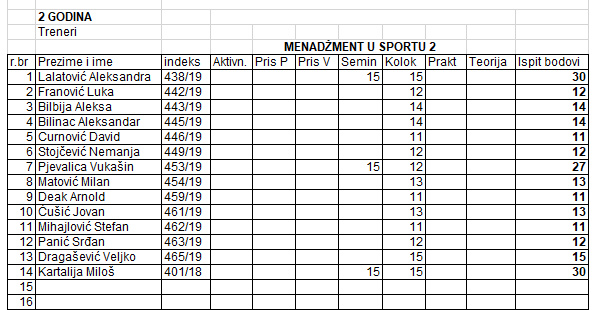 2) ОВЕ НЕДЕЉЕ НА РЕДОВНОМ ЧАСУ МЕНАЏМЕНТА У СПОРТУ 2, ПО РАСПОРЕДУ ЋЕ БИТИ ОДБРАНА СЕМИНАРСКИХ РАДОВА: ПОТРЕБНО ЈЕ НАПРАВИТИ ПРЕЗЕНТАЦИЈУ, КАО И ДОНЕТИ ОДШТАМПАН ПРИМЕРАК РАДА У WORD-u. ВРЕМЕ ОДБРАНЕ РАДА ЋЕ БИТИ ОГРАНИЧЕНО НА ДО 15 мин.
