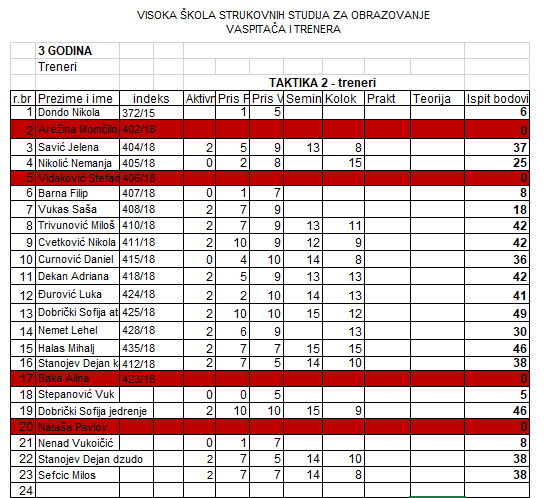 У ПРИЛОГУ ЈЕ ТАБЕЛА ОСТВАРЕНИХ ПОЕНА СВИХ ПРЕДИСПИТНИХ ОБАВЕЗА У ТОКУ СЕМЕСТРА.