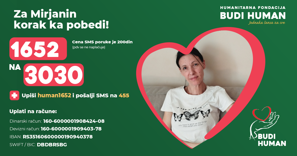 08.05.2024. 16:51 | Хуманитарна акција - За Мирјанин корак ка победи